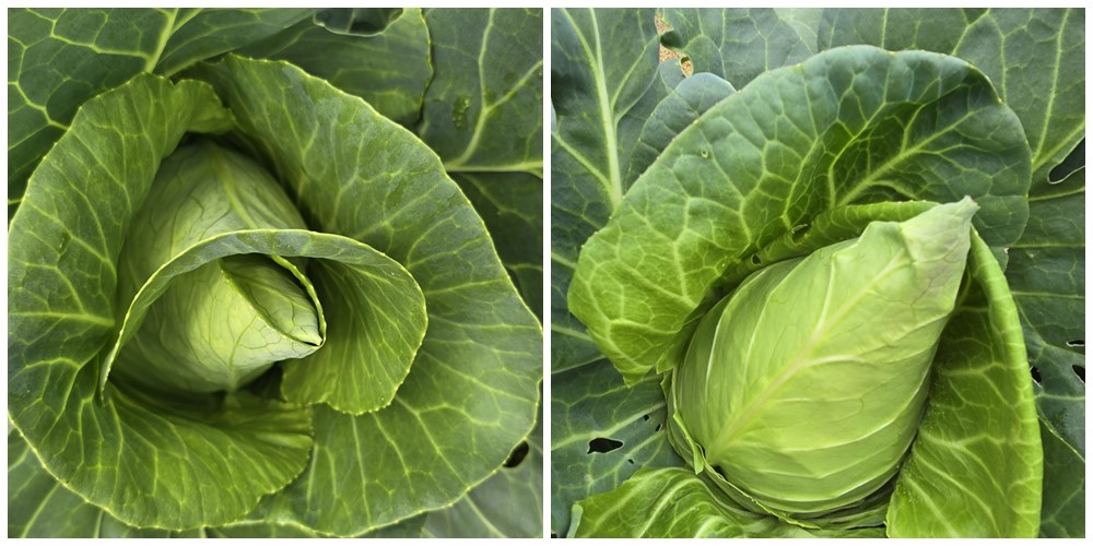 결구 상태: 잎이 충분히 뭉쳐서 단단하게 결구되었는지 확인합니다. 고깔 양배추는 일반 양배추처럼 아주 단단하게 결구되지 않을 수 있습니다.